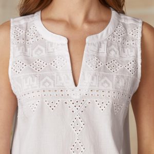 Vintage-inspired. cut-out embroidery accentuates the simple grace of this lightweight. airy tank with an easy. pull-over fit and notch neckline. Cotton. Machine. Imported. Sizes XS (0 to 2). S (4 to 6). M (8 to 10). L (12 to 14). XL (16 to 18). XXL (20 to 22). Front approx. 25-3/4L.